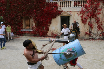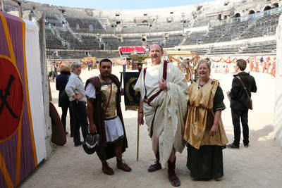 Group Italy trip May 2018 joined in the Birthday of Rome parade of Roman legions, the Great Roman Games in Nimes amphitheater, and HMB Battle of Nations with Vic Rosendale fighting for the NZ Steel Blacks against the world's best fighters.